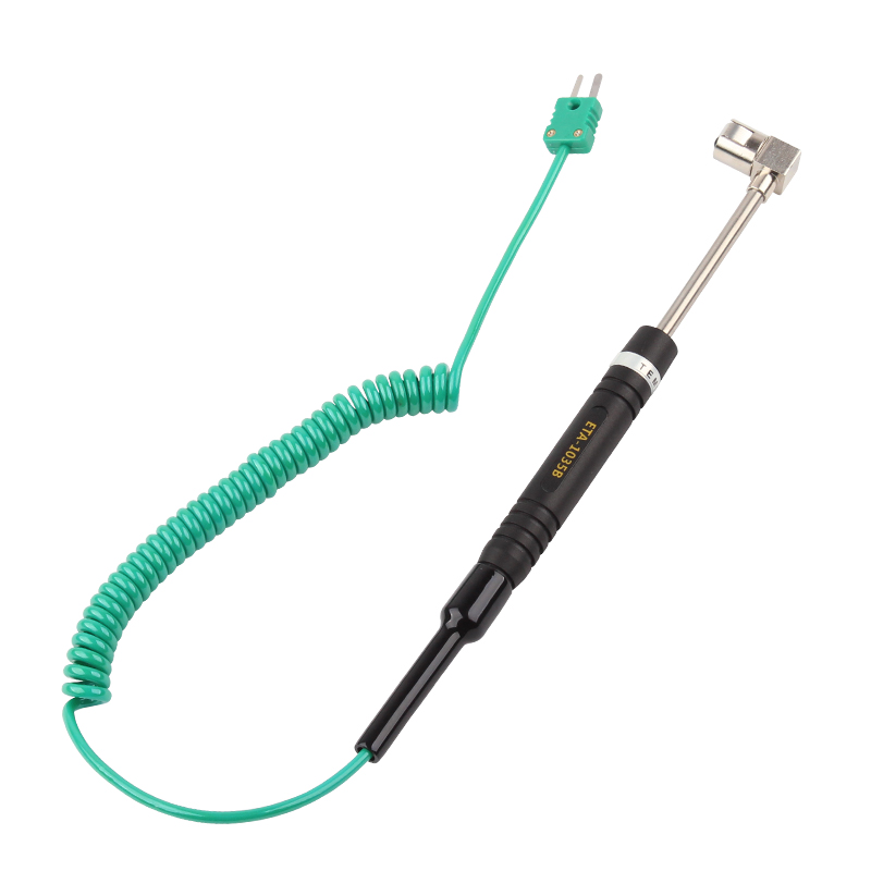 ETA1035B表面式溫度測棒適用于測量固定的物體表面,測溫端90度直角設計,方便特殊測量使用。 例如應用于鋁或塑膠模具、紡織品、PC板、紙製品及鋼板壓鑄后的表面溫度等。