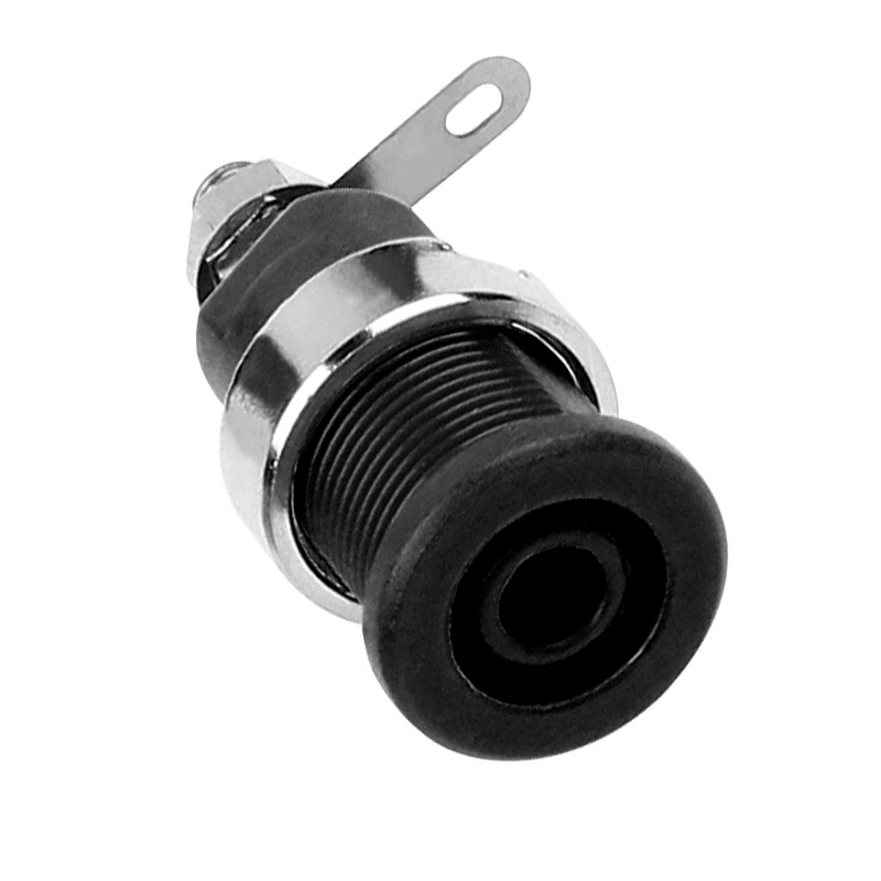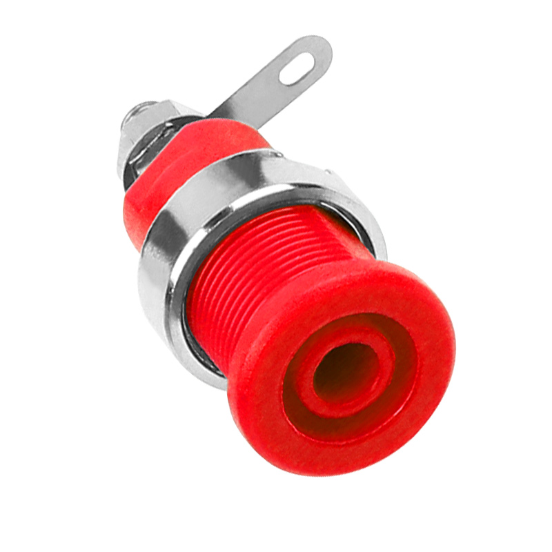 純銅鍍鎳嵌入式4mm輸入端子,采用金屬螺帽直接在面板進(jìn)行固定,耐高溫尼龍塑料,尾端可焊接。