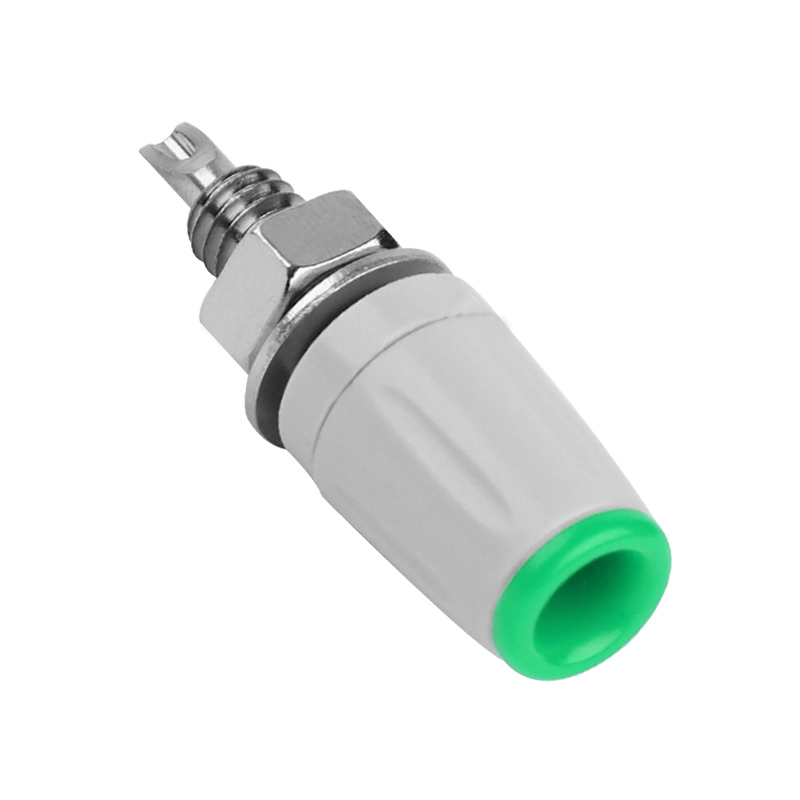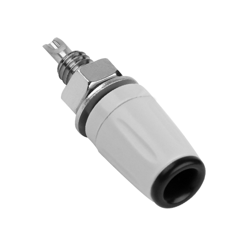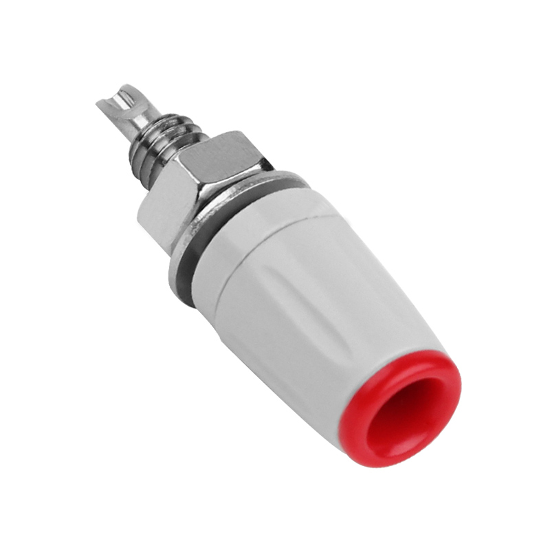 純銅鍍鎳嵌入式4mm輸入端子,采用金屬螺帽直接在面板進行固定,耐高溫尼龍塑料,尾端可焊接。